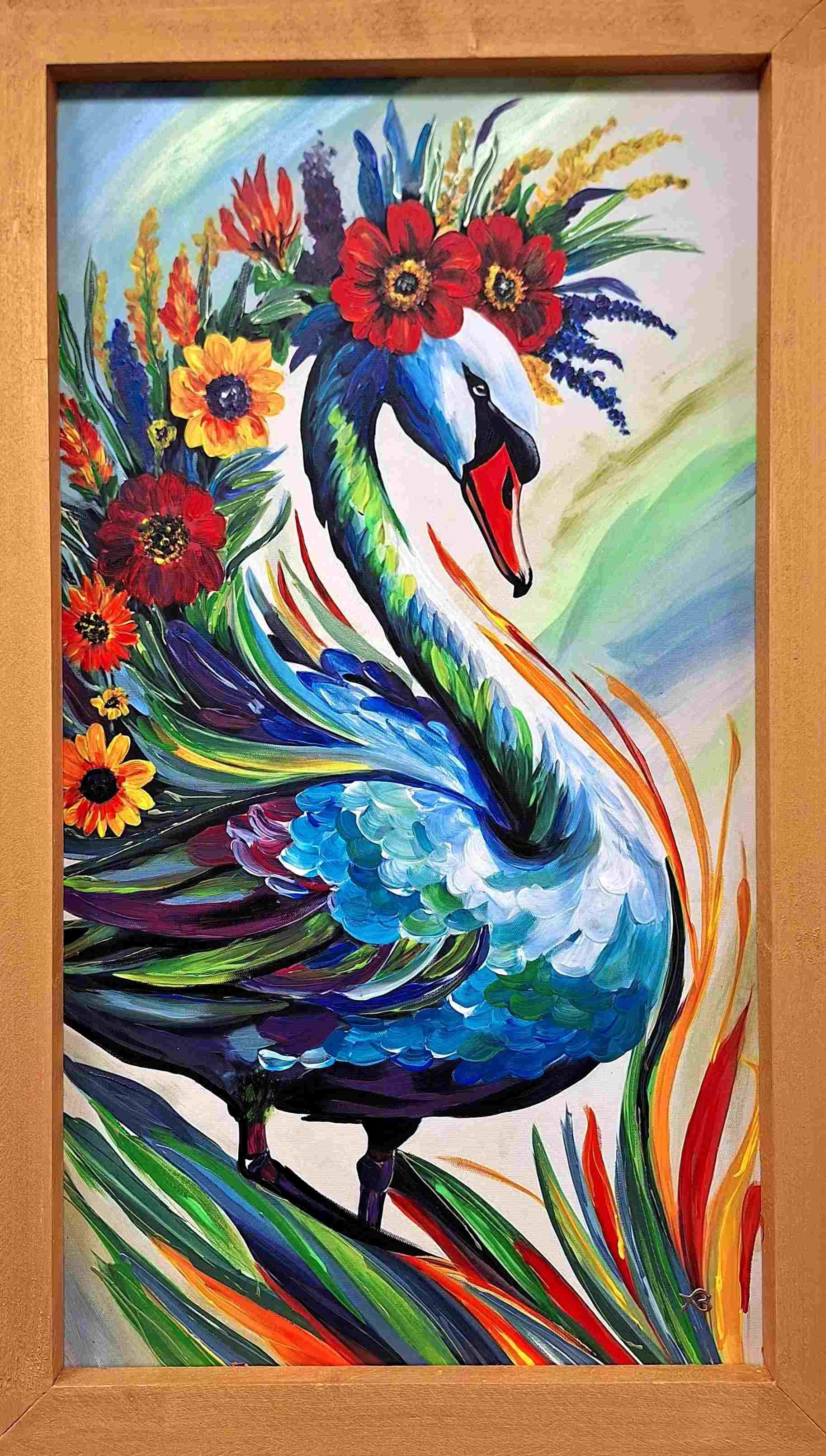 Mit kräftigen Farben, Blumen auf’m Kopp und viel Persönlichkeit kriegen Schwan, Huhn und Giraffe hier mal richtig die Bühne, die sie verdienen.